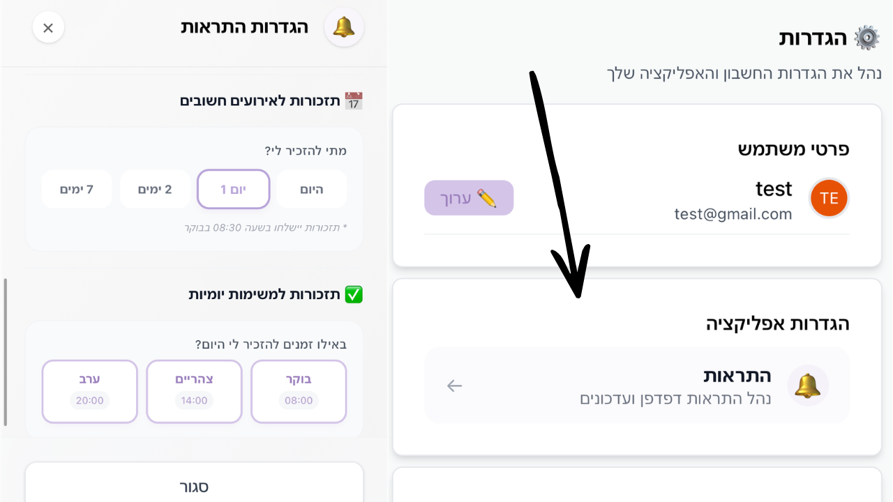 ניהול תזכורות בבוקר, בצהריים או בערב.